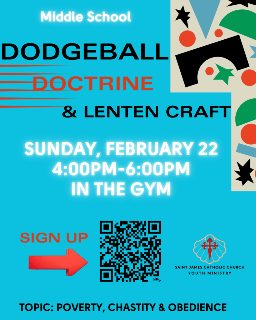 Middle Schoolers in grades 6-8 are invited to join Father Tim this year for dodgeball, pizza, and faith!