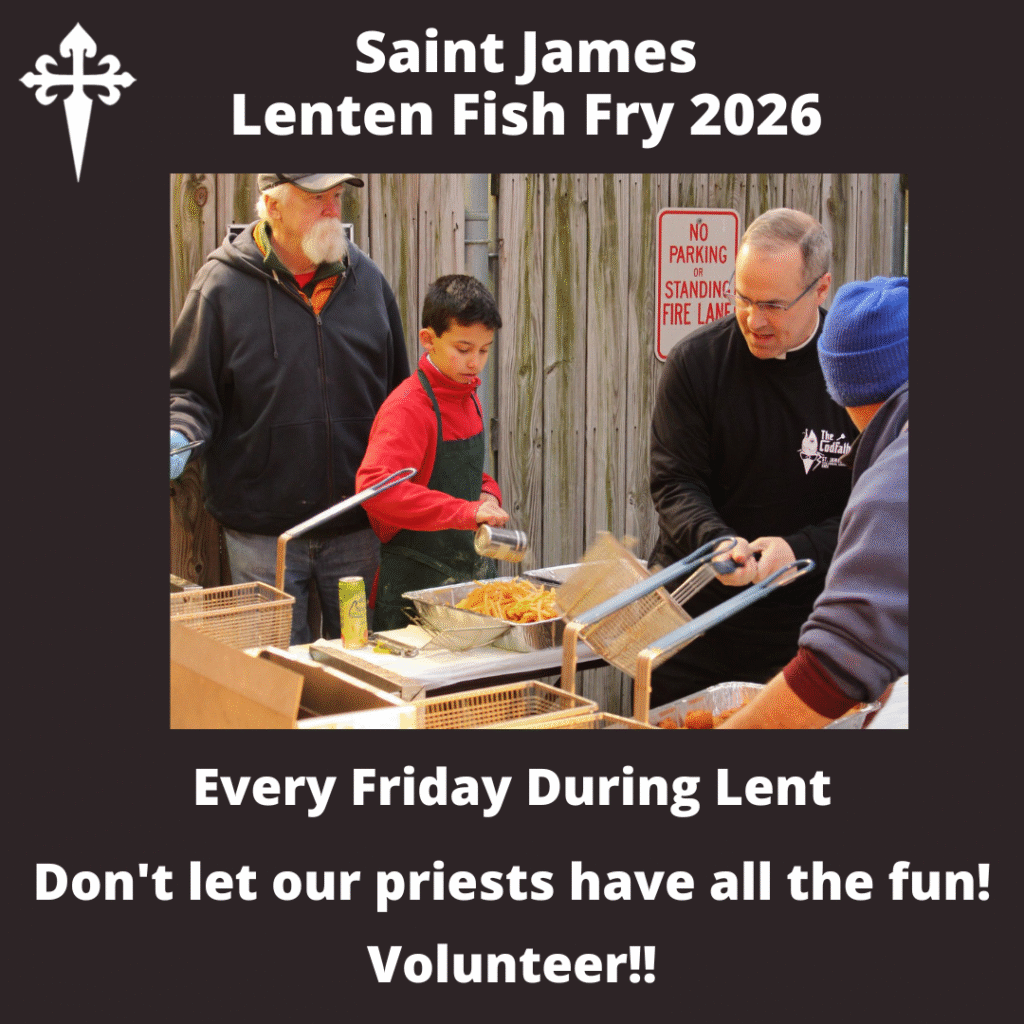 As we begin a time of Lenten reflection and look towards renewal, consider coming to Saint James for fellowship, community, and yes–fish…delicious baked or fried. We will be preparing meals every Friday during Lent. The Fish Fry is all about community. Over the last decade plus, people have gathered, friendships have been made, faith has been shared, and a whole lot of fish has been fried! We look forward to seeing you!