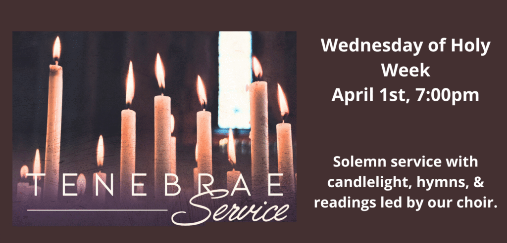 Monday, Tuesday, and Wednesday of Holy Week will have our normal 6:30am, 8:15am, and noon Masses.